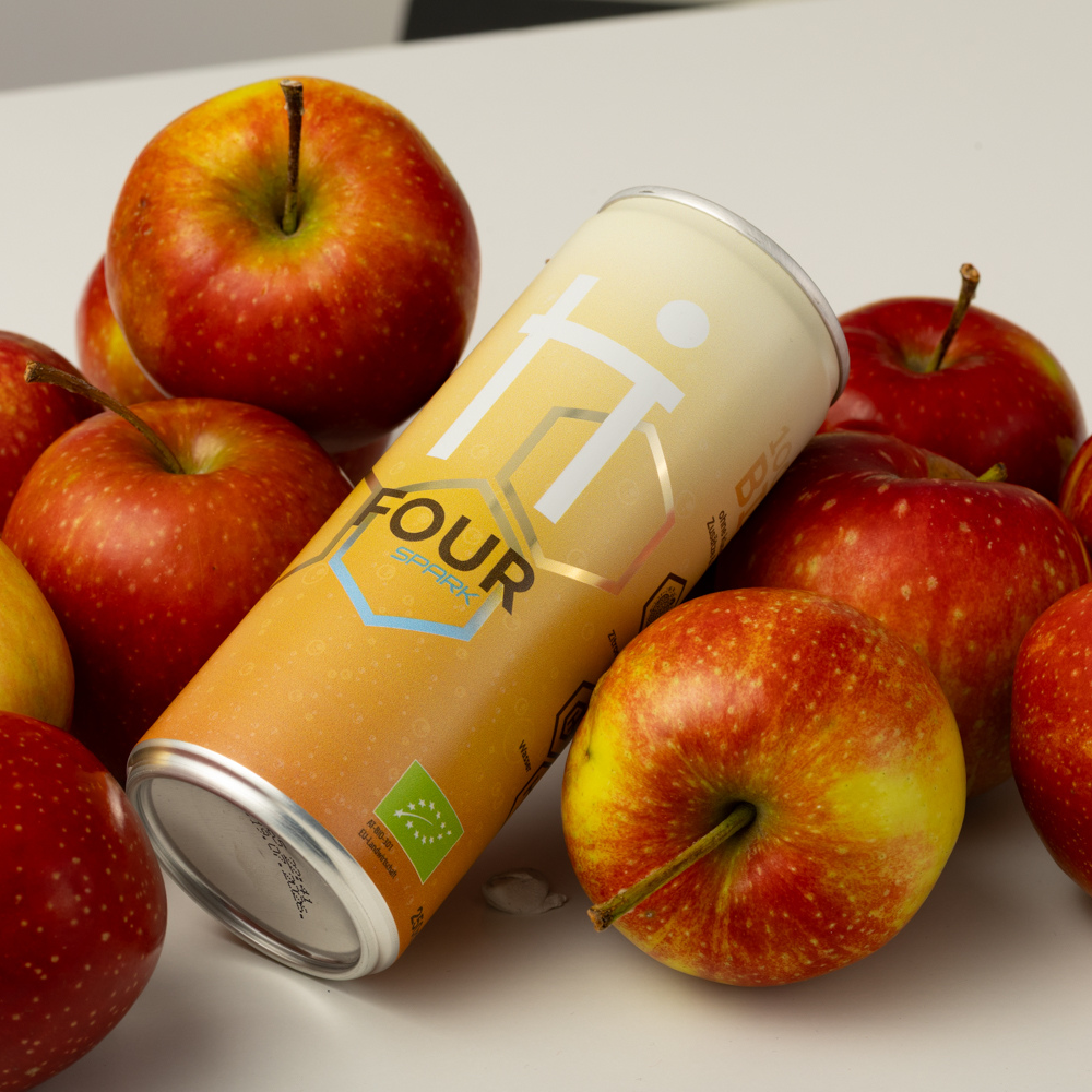 FOUR Spark ist das natürliche Bio-Erfrischungsgetränk mit Bio-Apfelessig, Bio-Honig, Bio-Zitrone und prickelndem Wasser.